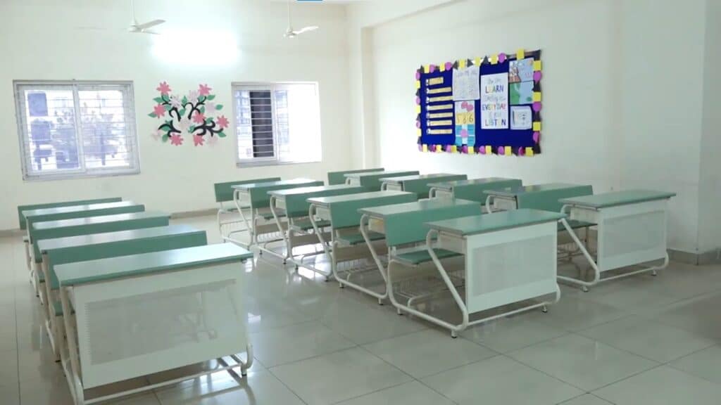 Instructional areas are standardized to ensure pedagogical consistency. Each classroom includes modular seating, fixed lighting levels, and instructional display systems calibrated for routine academic use. Occupancy thresholds are maintained in accordance with institutional policy to preserve instructional integrity and ensure compliance with student–teacher ratio norms. Internal acoustic treatment is applied to reduce auditory interference during teaching hours.
